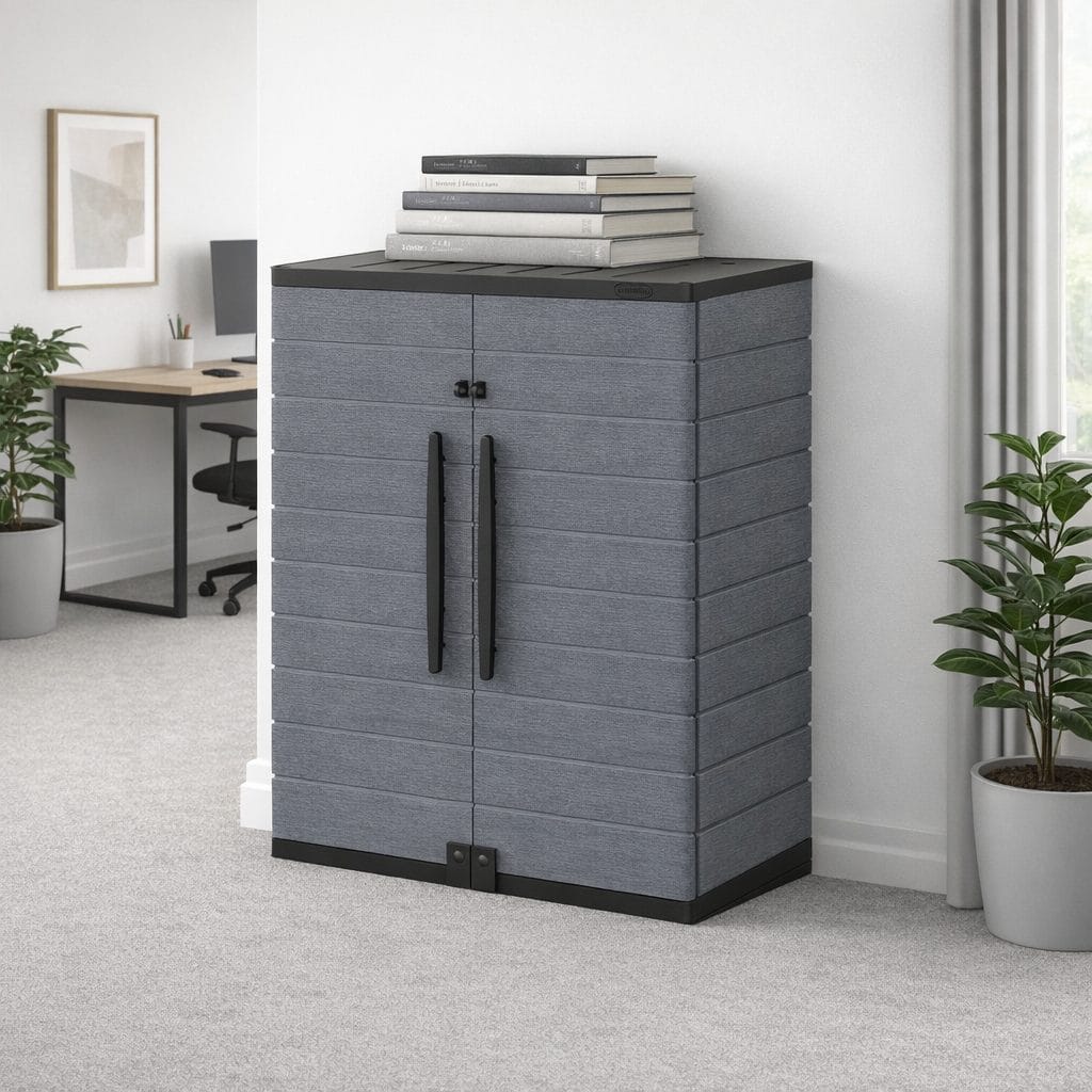 The Duramax Cedargrain Vertical Cabinet is ideally sized for balconies, garages, courtyards, utility rooms and gardens. Made from durable, weather-resistant plastic with an elegant wood-effect finish 🌲, it delivers the warm look of timber without any maintenance.