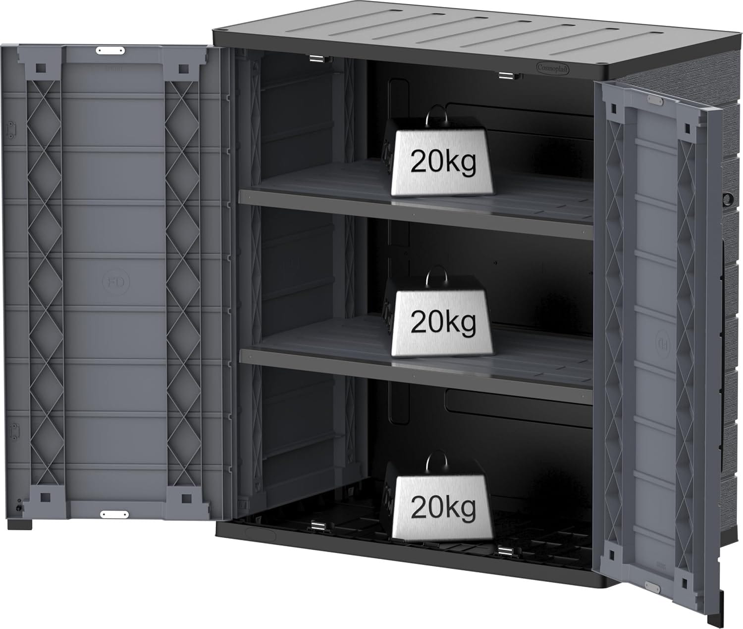 2 adjustable reinforced shelves (20 kg max load each) for flexible storage 📦